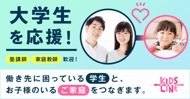 全国で24時間スマホで呼べるベビーシッター・家事代行サービス「キッズライン」を運営する株式会社キッズライン(本社:港区六本木/代表取締役社長:経沢香保子)は、この度、新型コロナウイルスの感染拡大の影響により、大きな打撃を受け、活躍の場が少なくなりつつある学生を主とした塾講師や家庭教師をアルバイトとしている方とお子様のお勉強サポートを必要とされているご家庭をつなぐことのできる、オンライン家庭教師としてのシッターを積極的に募集していることをお知らせいたします。