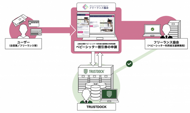 フリーランス協会は、TRUSTDOCKが提供するe-KYC/本人確認APIサービス「TRUSTDOCK」により、新型コロナウイルス感染症対策のための小学校等の臨時休業等に伴い、やむを得ずベビーシッターを利用する必要があり、割引券交付による助成を申請するフリーランスの本人確認業務をスムーズに行なうことが可能となります。