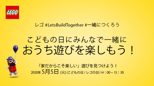 レゴ ジャパン株式会社(代表取締役:長谷川 敦/所在地:東京都港区、以下レゴ ジャパン)は、5月5日(火)こどもの日/レゴの日にオンラインイベント「レゴ #LetsBuildTogether #一緒につくろう こどもの日にみんなで一緒におうち遊びを楽しもう!―『家だからこそ楽しい』遊びを見つけよう!-」を開催し、イベントの様子をレゴ ジャパン公式Twitter(@LEGO_Group_JP)にてライブ配信いたします。