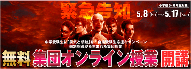 中学受験専門の個別指導塾・家庭教師である受験ドクターが、中学受験を目指す小学5・6年生向けにオンライン集団授業を5月8日~5月17日に無料で開講します。新型コロナウイルスの影響で小学校の休校や学習塾の休業が長期化するなか、学力の維持と向上に悩むご家庭の不安を少しでも解消するため、「中学受験で必須」かつ「多くの小学生が苦手とする単元」をピックアップし、「コロナに負けるな!中学受験生に勇気と感動を!自粛受験生応援キャンペーン」として今回特別に無料で全国のご家庭にオンラインでお届けします。