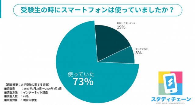 HUSTAR株式会社が運営する、ひとりひとりに合わせた学習プランを指導するオンライン学習コーチングサービス『スタディチェーン』http://studychain.jp/ 編集部は、「受験期にスマートフォンは使用していたか」について調査しました。