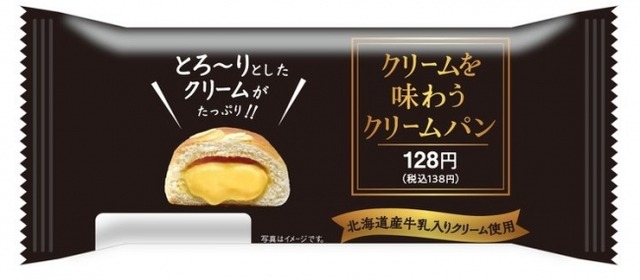 卵感と牛乳のコクが味わえるカスタードクリームを、従来のクリームパンの約1.5倍詰めた、重量感のあるクリームパンです。カスタードクリームの黄色をアクセントとした、高級感のあるパッケージもポイントです。