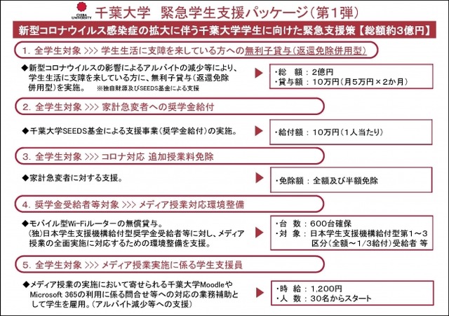 アルバイト収入が減少した学生への支援として、当該学生を千葉大学は雇用します。