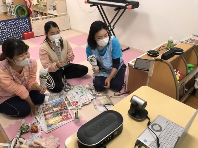 4月30日(木)に開催された『オンライン保育園』では、担当保育士3名と各家庭とをリアルタイムでつなぎ、30分間実施されました。保育士の点呼による出欠確認から始まり、歌やダンス、おもちゃづくりなど実際の保育園での保育に沿ったものを行いました。子どもたちは、画面越しでも久しぶりに先生に会えて喜びの声を上げ、また保護者も保育士との会話を楽しむ様子が見られました。保育士も「大きくなったね」などと子どもに呼びかけ、子どもの成長を確認でき、終始満面の笑みで『オンライン保育園』が行われました。