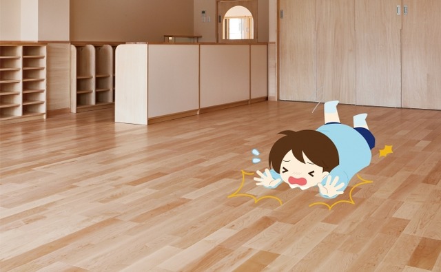 「プレミアムキッズ スマートセーフティ」は、 床材裏面に特殊なクッションを採用することで、保育施設や高齢者施設で推奨される「G値*」100以下をクリアしており、保育施設だけでなく高齢者施設や病院等でも使用いただけます(*G値=転倒時の安全性の指標となる値)。保育施設や高齢者施設における安全性に配慮しながら、天然木の素材感を感じられる床材を提供することで、より心地よい空間の実現と、より豊かな暮らしの創造に貢献いたします。