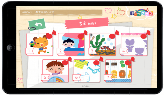 パソコンやタブレットを使って、「もじ」「かず」「ちえ」を学ぶデジタル教材です。画面タッチやスライドをして正解を選ぶことができるので、小さいお子さまでも感覚的に操作することができます。