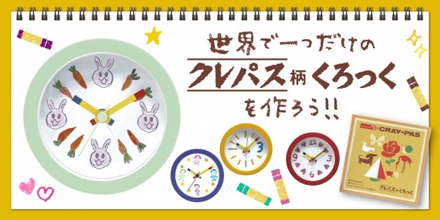 時計専門店タイムステーションNEOと文具メーカーサクラクレパスのライセンスコラボ時計である「クレパス柄くろっく」を用いて、世界で一つだけのオリジナル時計(文字盤)をデザインしていただけます。