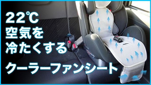 ・送風ファンがイスと人との間に空気の流れを起こす事によってお尻・背中の蒸れを解消。車内ではエアコンと組み合わせることで、マイナス22℃ダウンを実現!!