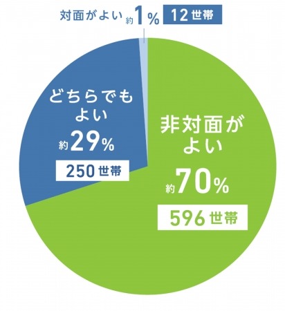 その結果、荷物の受け取り方では、「非対面がよい」と「どちらでもよい」合わせて約99%となり、「対面がよい」と回答した人の割合はわずか約1%にとどまりました。パナソニックが2019年に実施した調査(※)で対面が良いと回答した人の割合は約39%であり、求められる荷物の受け取り方の変化が見て取れます。