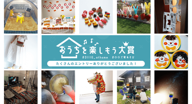 政府からの新型コロナウイルスの拡大防止のための外出自粛要請が長引くなか、自宅で過ごすための様々なアイデアが生まれています。DIIIGでは「おうちを楽しもう大賞」と題して、おうち時間が長いからこそチャレンジできるユニークなアイデアを2020年4月14日~5月6日まで、インスタグラムで募集しました。