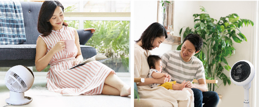 今回発売する「音声操作サーキュレーター」3機種は、前述した独自の高性能音声認識回路とマイクを本体に内蔵しており、音声の認識から操作までの応答が速く、ストレスなく簡単に操作できます。音声で操作ができるため、買い物帰りや乳幼児連れで両手が塞がっているとき、リモコンが見当たらないときなど様々な生活シーンに対応できます。