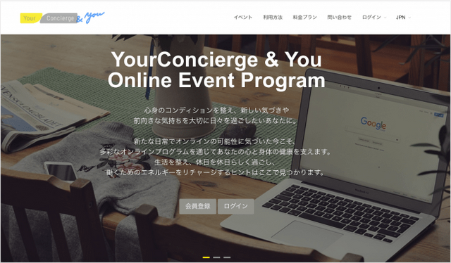 平日に開催する「ウェルネス&チャイルドケア」をテーマにした、ヨガ・ワークアウト・フードセミナー・お子様が参加できる英語レッスンや工作ワークショップなど20種類以上の多彩なオンラインイベントに、月額4,400円(税込)で自由に参加することができます。(一部、有料・定員制のプログラムもあります)。個人の方からのお申し込みは当プログラムのウェブサイト(https://myaccount.yourconcierge.jp)で受け付けます。