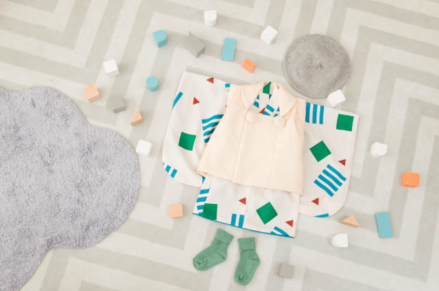 今回の『オリジナル着物プチ』は、赤ちゃんに似合う優しい色合いのものからビビットな遊び心のある色合いのものまで4パターン展開。着物の作りはセパレートタイプでサイズ調整や着心地も考えて作成。