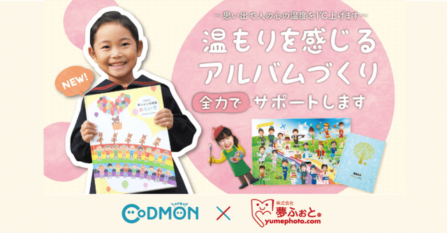 この度全国の卒園卒業アルバム制作会社 株式会社夢ふぉと(本社:大阪府大阪市、代表取締役:林さゆり)は、株式会社コドモン(本社:東京都港区、代表取締役社長:小池 義則)が提供するこども施設業務サポートサービス「コドモンCoDMON」の写真販売機能とのシステム連携が4/7完了し、サービス始動しましたことをお知らせします。