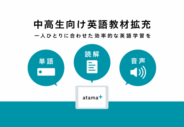 グローバル化が急速に進む社会において、日本の教育は英語4技能(読む、書く、話す、聞く)を身につけることを重視する方向に変化しています。これまでもatama+は、英語4技能を習得する土台となる英文法・語法教材を2017年3月より提供してまいりました。
