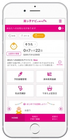大潟村に採用された『潟っ子ナビ』は、スマートフォン・タブレット端末・PCに対応したサービスで、妊産婦と子どもの健康データの記録・管理や予防接種のスケジュール管理、出産・育児に関するアドバイスの提供など、育児や仕事に忙しい母親や父親を助けてくれる便利な機能が充実しています。