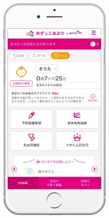 久米南町に採用された『ゆずっこあぷり』は、スマートフォン・タブレット端末・PCに対応したサービスで、妊産婦と子どもの健康データの記録・管理や予防接種のスケジュール管理、出産・育児に関するアドバイスの提供、離れた地域に住む祖父母など家族との共有機能や、町が配信する地域の情報をお知らせするなど、育児や仕事に忙しい母親や父親を助けてくれる便利な機能が充実しています。