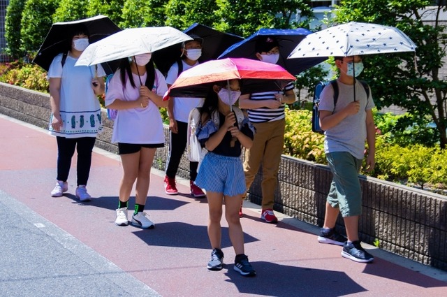 この取り組みはこれからの時季、マスクと帽子を着用しながらの登下校に熱中症の心配があるとして、童子山小学校が独自で始めたもので、傘をさすことで直射日光を遮るだけでなくソーシャルディスタンスも保てるというものです。