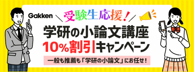株式会社 学研ホールディングス(東京・品川/代表取締役社長:宮原博昭)のグループ会社、株式会社 学研プラス(東京・品川/代表取締役社長:碇 秀行)は、2020年6月1日(月)より期間限定で、「学研のプライム講座」で小論文対策講座を10%OFFで利用できる受験生応援キャンペーンを実施します。