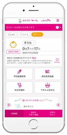 別府市と別府市医師会が提供する、別府で元気な子育てサポートアプリ 『わくワク「ゆ~モ」』は、スマートフォン・タブレット端末・PCに対応したサービスで、妊産婦と子どもの健康データの記録・管理や予防接種のスケジュール管理、出産・育児に関するアドバイスの提供、離れた地域に住む祖父母など家族との共有機能や、市が配信する地域の情報をお知らせするなど、育児や仕事に忙しい母親や父親を助けてくれる便利な機能が充実しています。