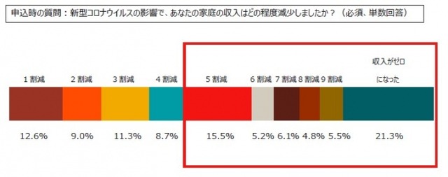 子ども支援専門の国際NGO である公益社団法人セーブ・ザ・チルドレン・ジャパン(理事長:井田純一郎/専務理事・事務局長:三好集、本部:東京都千代田区)は、新型コロナウイルス感染症緊急子ども支援として5月下旬に実施した「ひとり親家庭応援ボックス*1」(食料品や遊具の提供)利用世帯が申込時に回答した生活状況に関する項目の結果を発表しました(回答件数310世帯)。その結果、収入がゼロになったと回答した世帯は全体の2割、収入が5割以上減少したと回答した世帯は、全体の約6割にのぼることが明らかになりました。■申込結果(全文)はこちら>https://www.savechildren.or.jp/scjcms/dat/img/blog/3274/1591177848152.pdf
