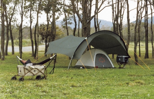 インナーのみのシンプルな構造なので、お持ちのタープやテント、シェルターとの組み合わせに最適で、雨風をしのぐことはもちろん、夏場の使用では日よけもでき、一日中快適に過ごすことができます。