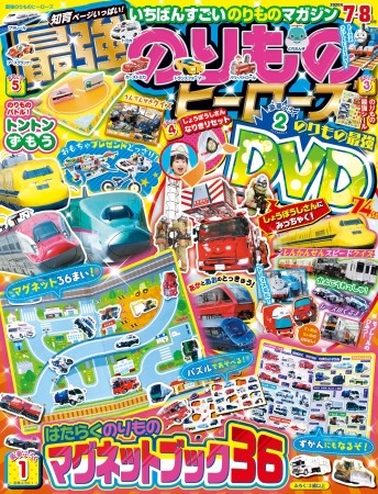 日本一のキッズ向けのりもの雑誌※『最強のりものヒーローズ7-8月号』は、マグネット36枚入り! 「はたらくのりものマグネットブック」が付録!! DVDでは消防士さんのお仕事に密着したり、新型特急「ひのとり」も大特集! ほかにも消防士さんなりきりセットやのりものトントンずもうなどおたのしみアイテムいっぱい!! 本誌も運転席だいかいぼうなど盛りだくさん!!