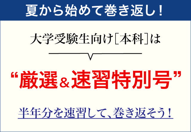 夏の厳選&速習特別号の対象講座は本科講座のみとなります。