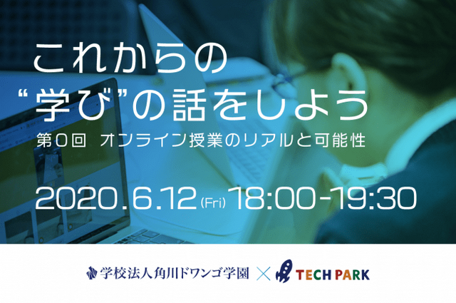 子どもでも遊ぶように学べるAIプログラミングをはじめ、最新テクノロジーを駆使した教育事業「TECH PARK(テックパーク https://www.techpark.jp)」を展開する株式会社グルーヴノーツ(以下、グルーヴノーツ)は、学校法人角川ドワンゴ学園(以下、角川ドワンゴ学園)と、これからの教育について語り合うオンライントークイベント「これからの“学び”の話をしよう」を共催します。初回は6月12日(金)18時00分~19時30分に、「第0回 オンライン授業のリアルと可能性」を開催します。