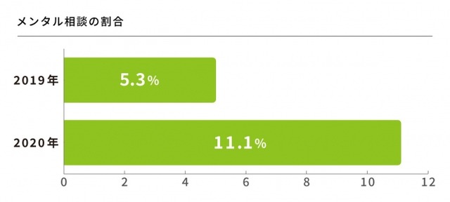 一方、前年同時期の2019年4月1日~5月31日では、精神的な不調に関する相談は全体の5.3%程度でした。