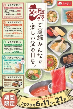 国内204店舗を展開する「和食さと」では、6月11日(木)~6月21日(日)の11日間、家族みんなで楽しめる「父の日特別キャンペーン」を開催します。