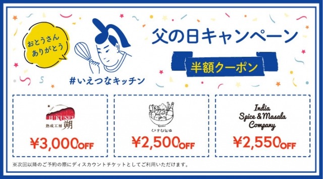 参加料金:¥5,000~¥6,000 (父の日特別価格&半額クーポン付き)
