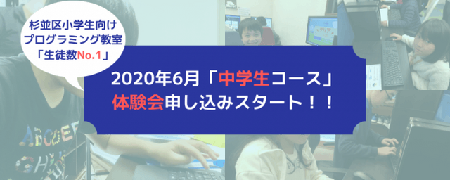 小学生向けプログラミング教室「プロタゴスクール」を運営する株式会社エーセン(東京都杉並区)は、2020年6/12(金)から世田谷区豪徳寺校と永福町校に新たに「中学生コース」をオープンする。