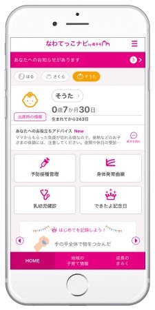 四條畷市に採用された『なわてっこナビ』は、スマートフォン・タブレット端末・PCに対応したサービスで、妊産婦と子どもの健康データの記録・管理や予防接種のスケジュール管理、出産・育児に関するアドバイスの提供、離れた地域に住む祖父母など家族との共有機能や、市が配信する地域の情報をお知らせするなど、育児や仕事に忙しい母親や父親を助けてくれる便利な機能が充実しています。