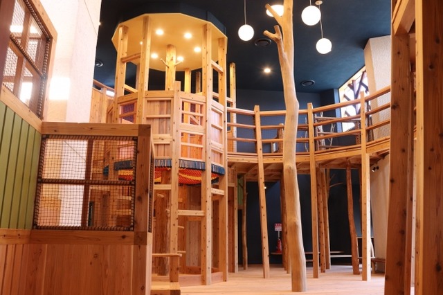 北陸最大級の屋内木育広場「あそびハウス こどもと森」は、「子どもたちが森や木とつながる場所をつくりたい」「子どもたちが自由に遊びを作り出す場所をつくりたい」「豊かな森の魅力をまちづくりに活かしたい」というコンセプトの、小学生をメインターゲットとした施設です。木をたっぷり使用した約400平方メートルの空間で、子どもたちの創造性を育てられるような遊びとプログラムを提供します。