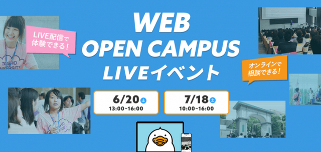 大正大学(学長:高橋秀裕、所在地:東京都豊島区)は、新型コロナウイルス感染症の拡大により7月までの対面でのオープンキャンパスを中止し、オンライン上でWEBオープンキャンパスを展開。大正大学で学べる内容や入試情報を伝えるコンテンツを配信していますが、さらに6月と7月のオープンキャンパス実施日には、InstagramやZoomを活用したliveイベントを開催いたします。