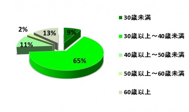 自然豊かなロケーションや広々とした住まいで子育てをしたいという需要が高く、30代が全体の65%