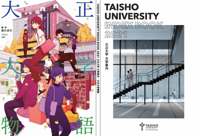 大正大学(学長:高橋秀裕、所在地:東京都豊島区)の2021年度大学案内は、本学が毎年実施しているアンケート結果において、昨今の高校生が進路決定の際に、大学案内よりもWebサイトを重視する傾向が強くなってきていることが窺えます。そんななか、本学は2022年度大学案内の完全デジタル化に向けて始動しました。その第一段階として、大学案内とWebサイトを相互にリンクさせる形へと進化させました。名前も「INDEX BOOK 2021」に改め、紙とWebサイトの良いところを融合した新しいパンフレットを目指しました。最大の特徴は、持ち運びやすさを重視してパンフレットのサイズをA5判に改良し、右から開くと本学の学部・学科の紹介や入試、就職情報などの情報ページ、左から開くと大正大学を舞台にした小説「大正大学物語」と両開き構成になっています。「大正大学物語」は、本学卒業生で小説家として活躍中の藤石波矢さんが本パンフレットのために書き下ろしたオリジナル作品です。