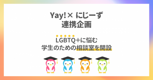 2020年1月1日にリリースし、22歳未満のユーザーを中心に約100万人以上が利用している急成長中のコミュニティアプリ「Yay!(イェイ)https://yay.space 」を運営する株式会社ナナメウエ(本社 東京都港区赤坂 代表取締役 石浜嵩博)は、LGBT支援団体「にじーず」と協力して、LGBTの学生に向けた相談室(https://yay.space/group/51084)をアプリ内に設置し、若者の抱える悩みについて支援を行ないます。