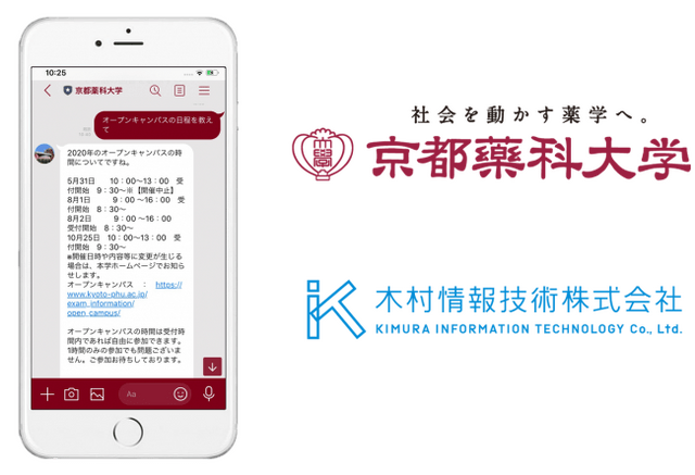 京都薬科大学では木村情報技術が開発したIBM Watson日本語版を活用したAIチャットボットを用いて、2019年10~12月にかけて在学生を対象に学内の問合せ業務に対し試験的運用を実施し、その結果をもとに本格運用を目指して2020年3月に契約を締結しました。