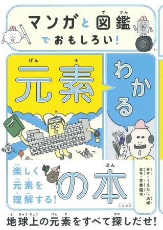 実験道具としておなじみのビーカーをキャラ化した「ビーカーくん」の生みの親、うえたに夫婦の最新刊『 マンガと図鑑でおもしろいわかる元素の本』が発売される。身近なものがどんな元素の組み合わせで出来ているかを 分かりやすくマンガで解説。総ルビ付きで小学生低学年から、勉強で覚えないといけない中高生、また学び直した い大人まで幅広い読者に対応した内容です。