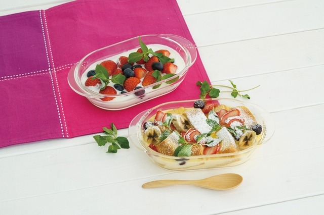 「耐熱ガラス製グラタン皿(2個セット)」は、市販のグラタンの素にお好きな野菜などを入れてちょうどよいサイズ感。持ち手付きでオーブンなどから取り出しやすい設計です。「トースター皿(3個セット)」は、パンや卵を同時に調理できるので、忙しい朝にもワンプレートモーニングのできあがり!また、「スィーツボウルセット(4個セット)」は、調理はもちろん、食器としても。スタッキングもできるので保管にも場所をとりません。