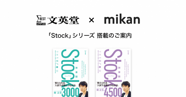 英単語アプリ「mikan」(以下、「mikan」)を運営する株式会社mikan(本社:東京都、代表取締役:高岡和正)は、株式会社文英堂(本社:京都府、代表取締役:益井英郎)と連携し、英単語Stock3000、4500(以下、「Stockシリーズ」)を英単語アプリmikan内で2020年6月26日より配信を開始致しました。