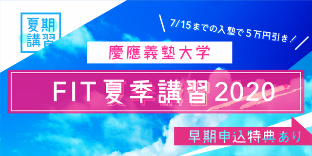 さらに、7月15日までに入塾し「慶應FIT入試、書類対策講座」をお申込みされた方限定で、5万円割引になるお得になる特典もご用意しております。