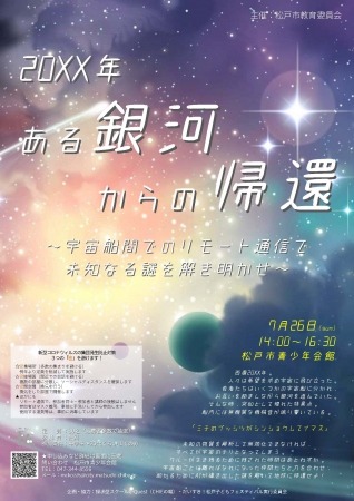 松戸市は、7月26日(日)に青少年会館講座「20XX年 ある銀河からの帰還~宇宙船間でのリモート通信で、未知なる謎を解き明かせ~」を開催します。申し込みは7月20日(月)まで。8月23日(日)に開催される小学生向けオンラインイベントの企画運営スタッフも大募集。