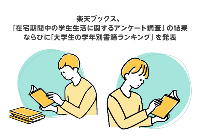 楽天株式会社(本社:東京都世田谷区、代表取締役会長兼社長:三木谷 浩史、以下「楽天」)が運営するオンライン書店「楽天ブックス」は、学生を対象とした「楽天市場」の会員プログラムである「楽天学割」の会員を対象に実施した「在宅期間中の学生生活に関するアンケート調査」(注1)の結果ならびに、「楽天学割」と「楽天ブックス」の双方を利用する大学生の購買データをもとにした「大学生の学年別書籍ランキング」(注2)を発表しました。
