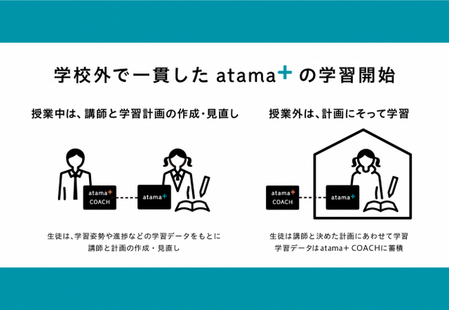 この変化をうけて、これまで対面もしくはオンラインで実施してきた塾の授業時間内に加え、家庭や自習室での学習時間でもatama+を活用生徒の学校外学習を全面的に支援するサービスの提供を開始します。