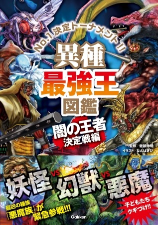 本シリーズ最新刊の『異種最強王図鑑 闇の王者決定編』は、その「異種最強王」の第2弾。妖力や魔術、特殊能力を駆使する「妖怪」と「幻獣」、そして新たに邪悪な「悪魔族」を緊急参戦させ、計24体による異種異能戦を開催。真の「闇の王者」を決定します。
