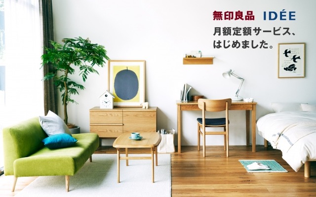 無印良品とIDÉEの家具・インテリアを、「寝る」「学ぶ/働く」「くつろぐ」という3種の基本セットにし、お手頃な月額定額料金でご利用頂けるサービスです。年単位の契約で、1年/2年/3年/4年のプランをご用意しています。お選びいただいたプランの期間が満了した際には、「解約・返却」「契約延長」を選択するか、ご希望されるお客様には買い取り手数料を頂戴し、そのままお使い頂くことも可能です。