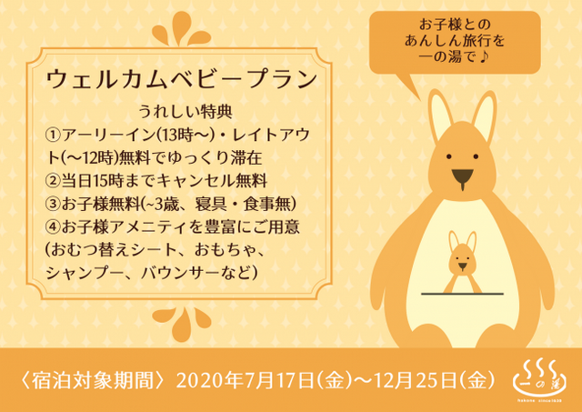 箱根で温泉旅館を展開している「株式会社一の湯」(本社:神奈川県足柄下郡箱根町、代表取締役:小川 尊也 創業1630年)はお子様だけでなくパパ、ママにも優しい「ウェルカムベビープラン」の予約受付を開始いたします。